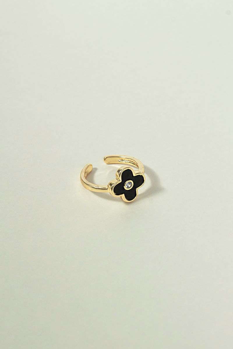 Anel Ajustável Trevo Preto com Zircônia