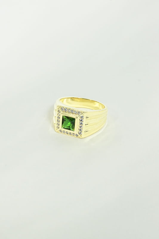 Anel Cravejado Verde Com Zircônias