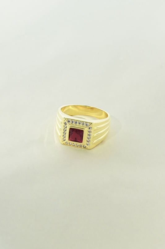 Anel Cravejado Vermelho Com Zircônias
