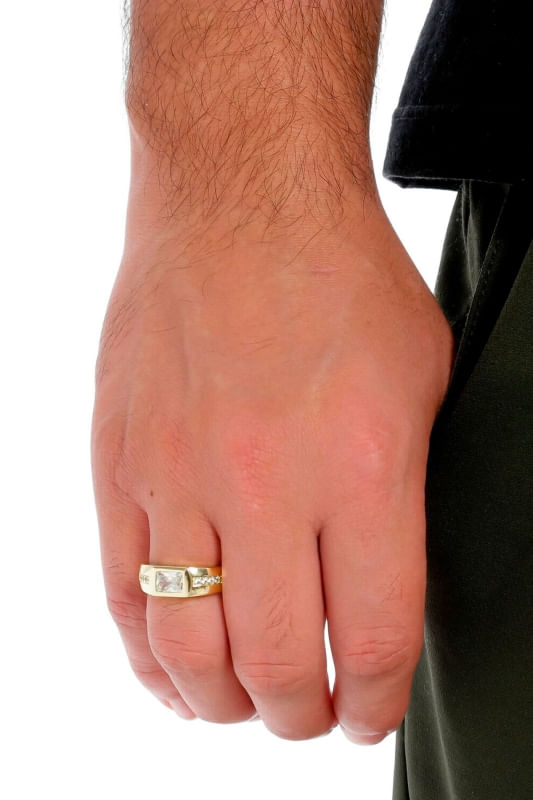 Anel Cristal Retangular Cravejado Com Zircônia