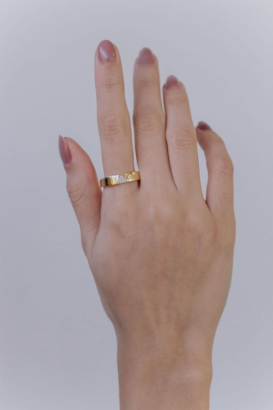 Com design equilibrado e visual contemporâneo, o Anel Liso e Zircônias combina a simplicidade de uma superfície lisa com o brilho pontual das zircônias aplicadas de forma elegante. A transição entre o acabamento polido e as pedras cria um contraste sutil que valoriza o acessório, resultando em um visual versátil e sofisticado sem exageros.