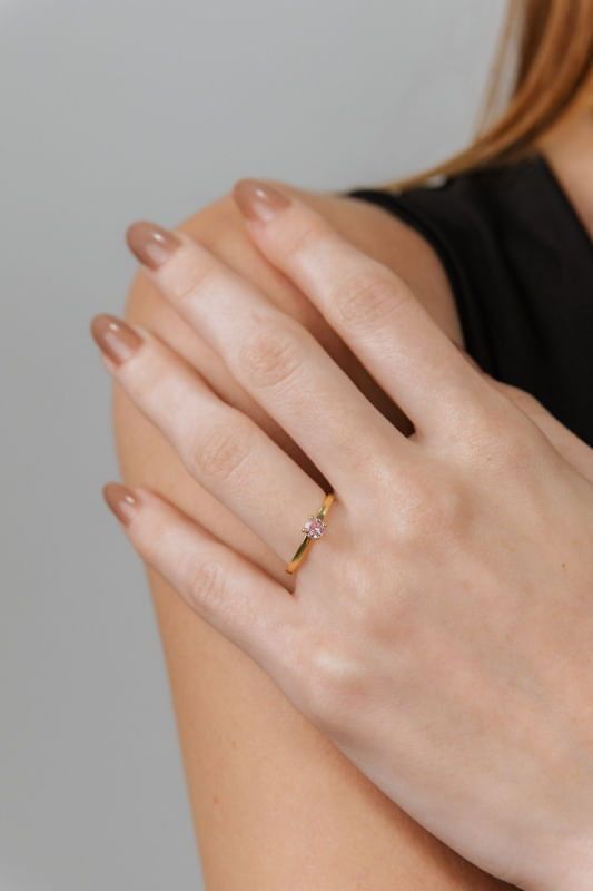 Com proposta delicada e toque de cor sutil, o Anel Solitário Zircônia Rosa destaca uma zircônia central em tonalidade rosada, trazendo luminosidade com personalidade. O modelo solitário mantém o foco total na pedra, criando um ponto de destaque elegante e equilibrado, ideal para quem aprecia detalhes discretos, mas com identidade própria.