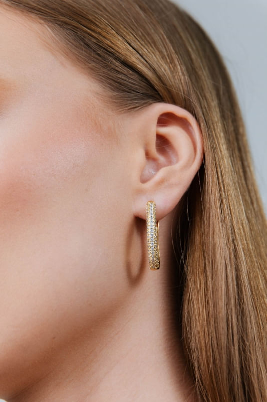Este Brinco é banhado em 10 camadas de Ouro 18K, garantindo a você muita qualidade e durabilidade, evitando que a peça escureça, desbote ou descasque.