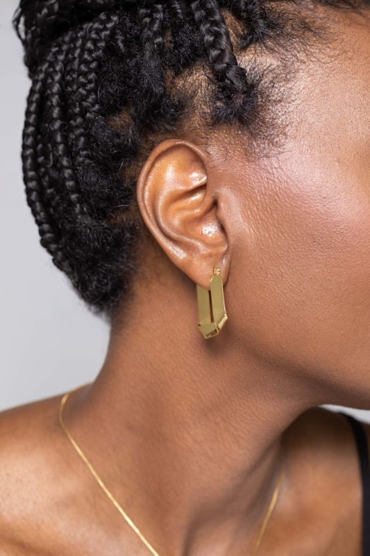 Elegante e marcante, o brinco possui tamanho de 3,1 cm, sendo uma argola de proporção maior que valoriza o rosto com presença elegante e destaque sofisticado. O design orgânico torna a peça versátil, permitindo combinações com outros acessórios ou o uso como peça principal para um visual mais impactante.