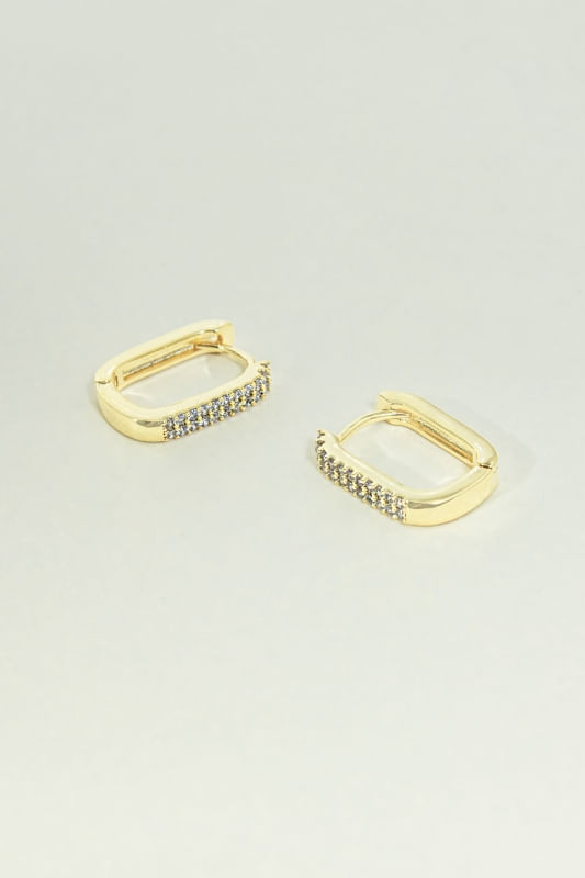 Brinco Argola Click Quadrada Cravejada