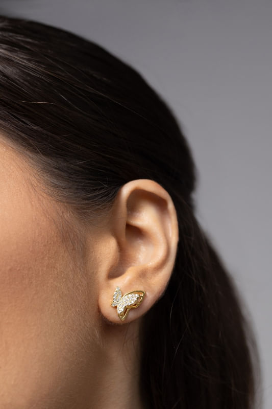 Delicado e encantador, o Brinco Borboleta com Micro Zircônias traz um design inspirado na leveza e na beleza das borboletas. As micro zircônias cravejadas realçam o formato da peça, criando um brilho sutil que valoriza cada detalhe e traz ainda mais charme ao acessório.
