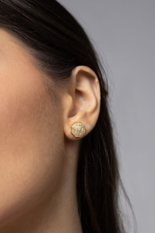 Delicado e cheio de brilho, o Brinco Cravejado Cristal apresenta um design repleto de pequenos cristais que criam um efeito sofisticado e elegante. A peça valoriza cada detalhe, transmitindo leveza e charme ao visual.