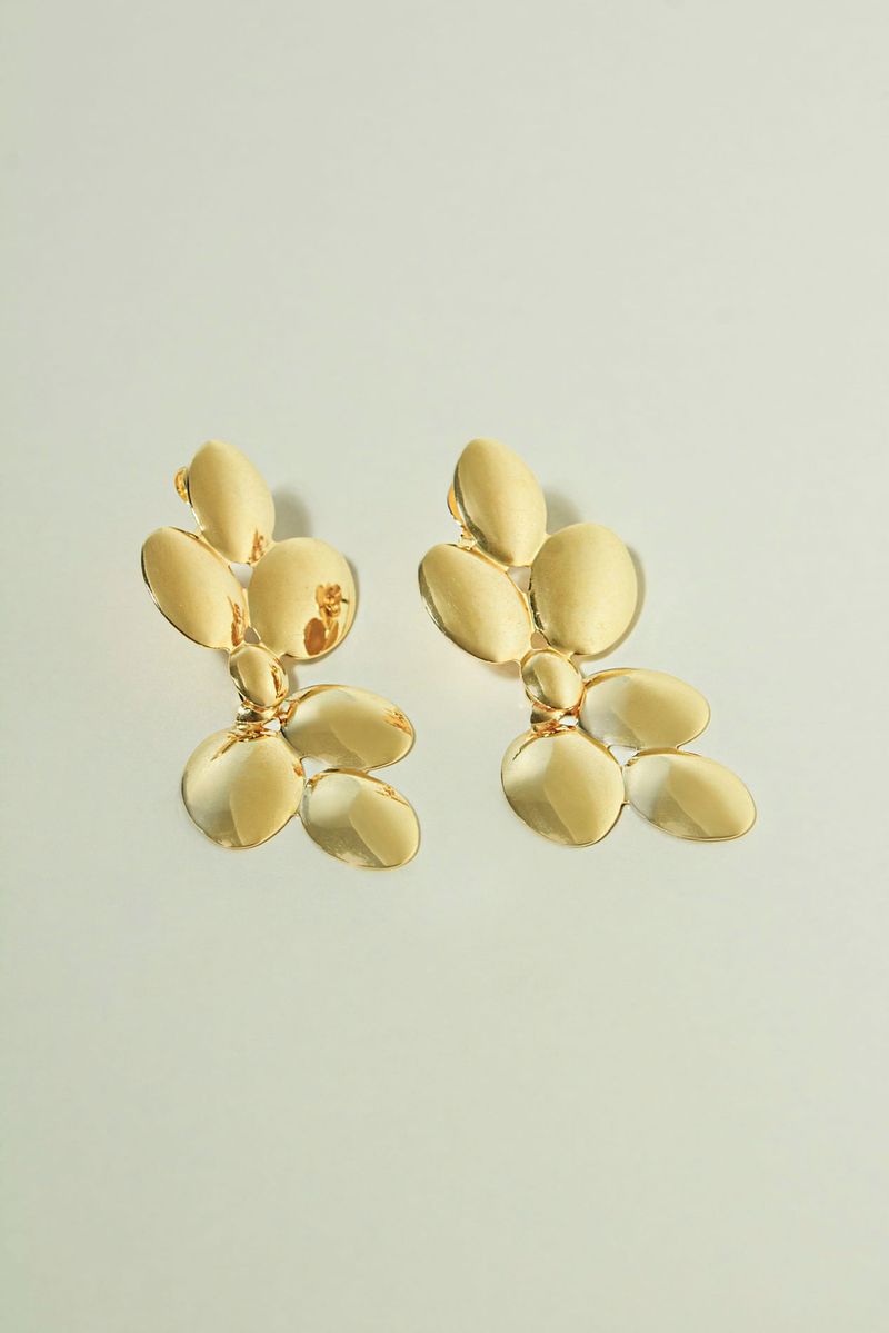 Moderno e cheio de personalidade, o Brinco Duplo Orgânico Esferas apresenta um design diferenciado composto por várias esferas irregulares que formam um efeito duplo elegante e contemporâneo. As formas orgânicas criam textura e movimento, trazendo destaque e sofisticação ao visual.