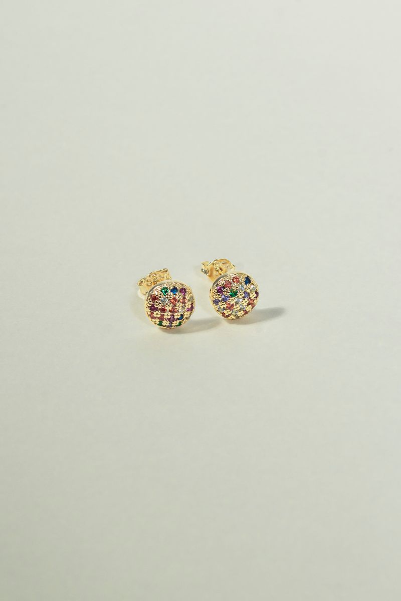 Leve e cheio de charme, o Brinco Esfera Cravejada Colorida Médio apresenta uma esfera delicadamente cravejada com cristais coloridos, criando um visual vibrante e sofisticado. A composição detalhada valoriza cada ponto de brilho, trazendo elegância ao look.