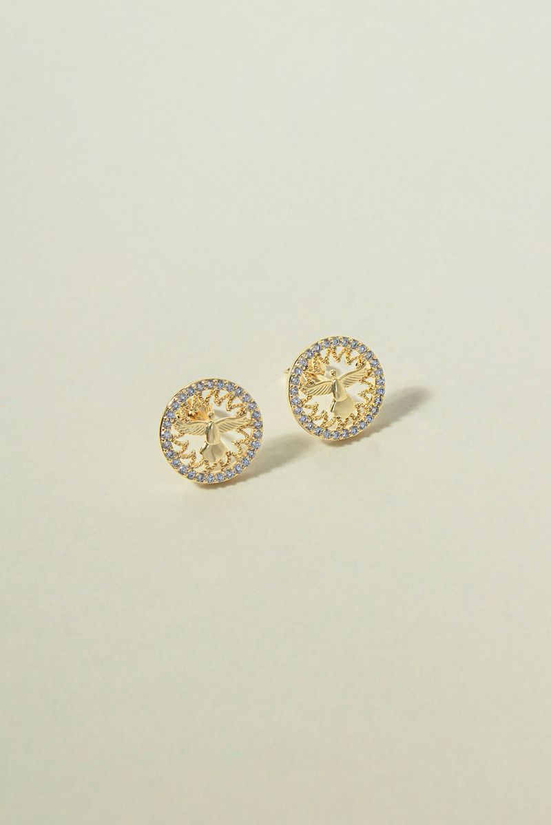 Elegante e cheio de brilho, o Brinco Espírito Santo Cravejado apresenta um design redondo com bordas delicadamente cravejadas de zircônias, criando um efeito luminoso e sofisticado. O contraste entre o centro liso e o contorno cravejado valoriza a peça, destacando seu charme e estilo.