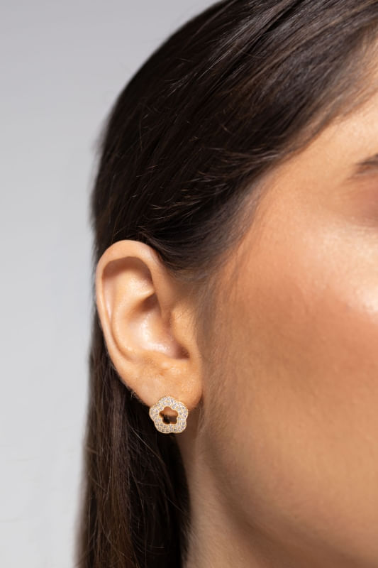 Brinco Flor Vazada Cravejada