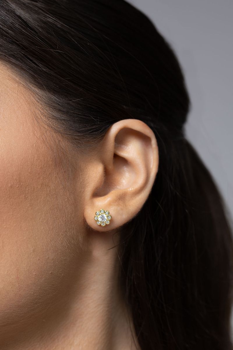 Pequeno e cheio de delicadeza, o Brinco Florzinha Pontos de Luz apresenta um design encantador em formato de flor, composto por pedras que refletem a luz com suavidade. O brilho sutil das zircônias valoriza a peça e traz um toque elegante ao visual.