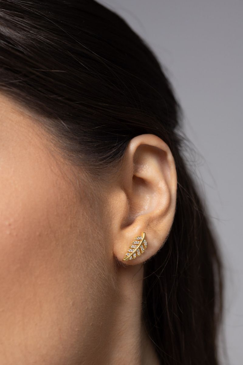Com inspiração na delicadeza da natureza, o Brinco Folha Cravejada apresenta um design elegante que remete às formas suaves das folhas. As pedras cravejadas acompanham o contorno da peça, criando um brilho sutil que valoriza ainda mais o formato delicado e sofisticado do brinco.