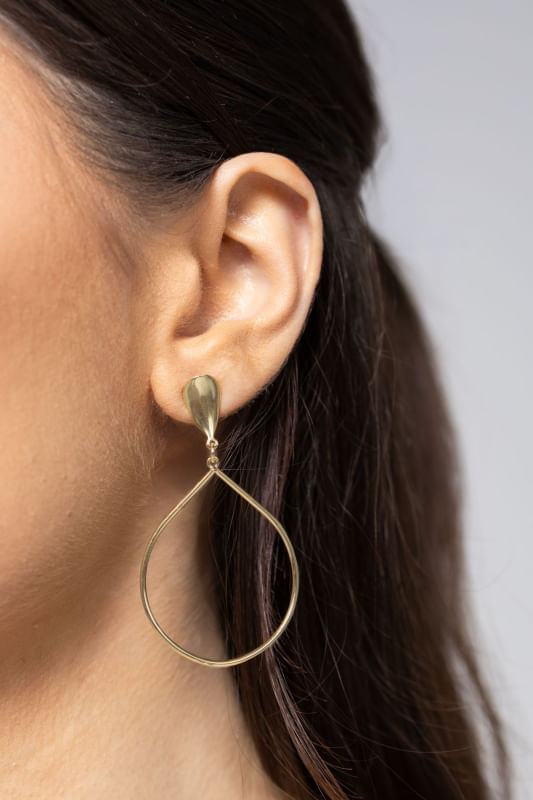 Elegante e marcante, o brinco possui tamanho de 5,5 cm, proporcionando um efeito alongado que destaca o rosto com leveza e sofisticação. As duas gotas vazadas criam profundidade e fluidez no design, tornando o acessório perfeito para compor produções elegantes ou adicionar um toque refinado ao dia a dia.