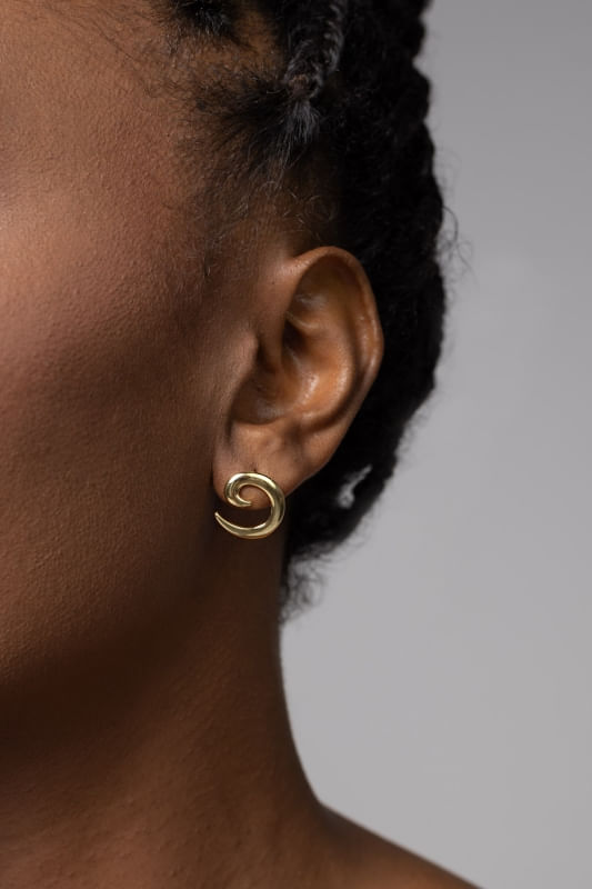 Elegante e versátil, o brinco possui tamanho de 1,5 cm, oferecendo presença discreta com estilo marcante. O design em espiral cria um efeito visual interessante e moderno, tornando o acessório perfeito para complementar diferentes produções, do dia a dia a ocasiões especiais.