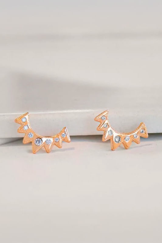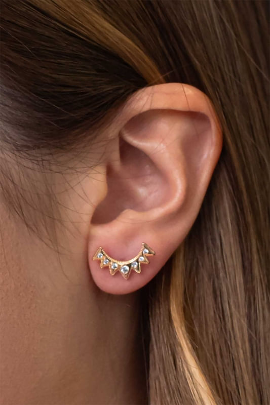 Brinco Meio Sol com Detalhes em Cristal