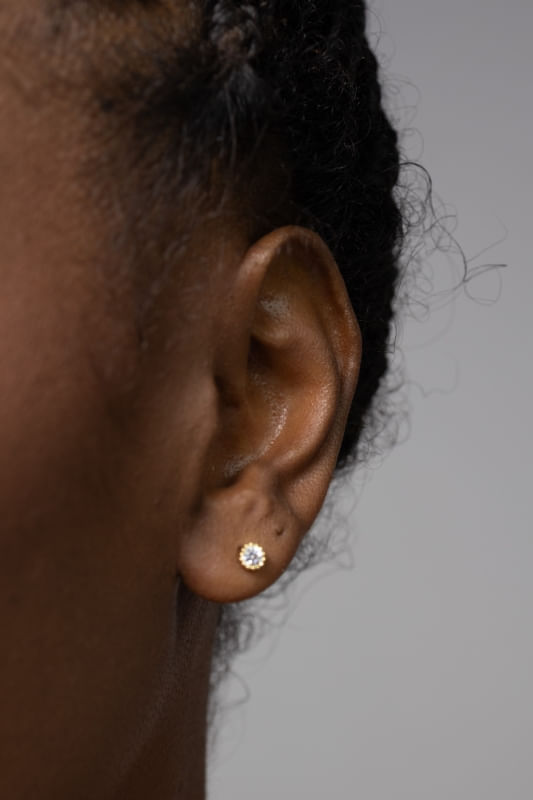 Um brinco pequeno que adiciona luminosidade e elegância ao visual.