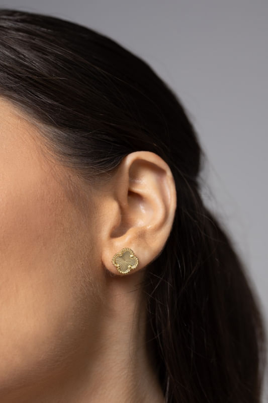 Trevo texturizado que destaca o visual com delicadeza, charme e uma elegância sofisticada em cada detalhe.