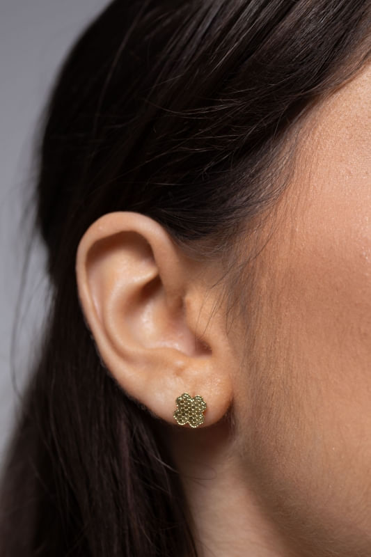 Delicado e cheio de significado no design, o Brinco Trevo Trabalhado apresenta um formato inspirado no trevo, com detalhes trabalhados que valorizam ainda mais a peça. O acabamento traz textura e profundidade ao desenho, criando um visual elegante e ao mesmo tempo sutil, perfeito para quem aprecia acessórios com charme e delicadeza.