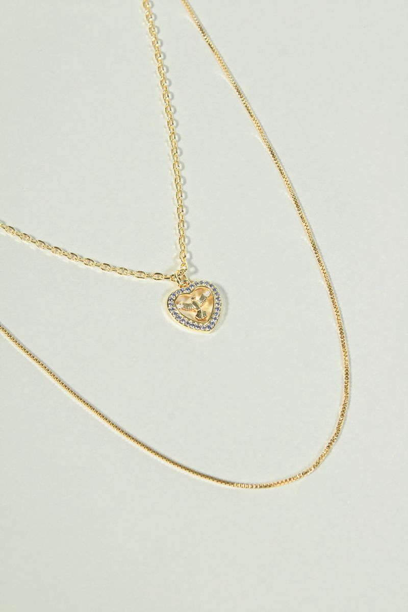 Colar Duplo Espírito Santo Coração Cravejado