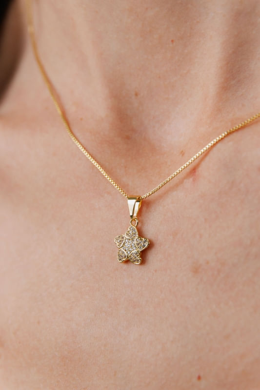 Colar Estrela Corações Cravejada