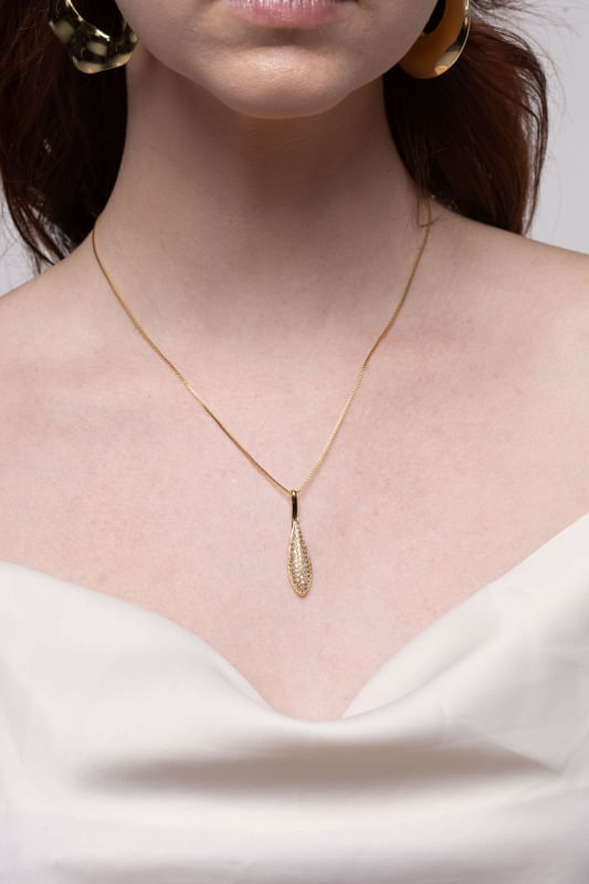 Colar Gota Alongada Cravejada