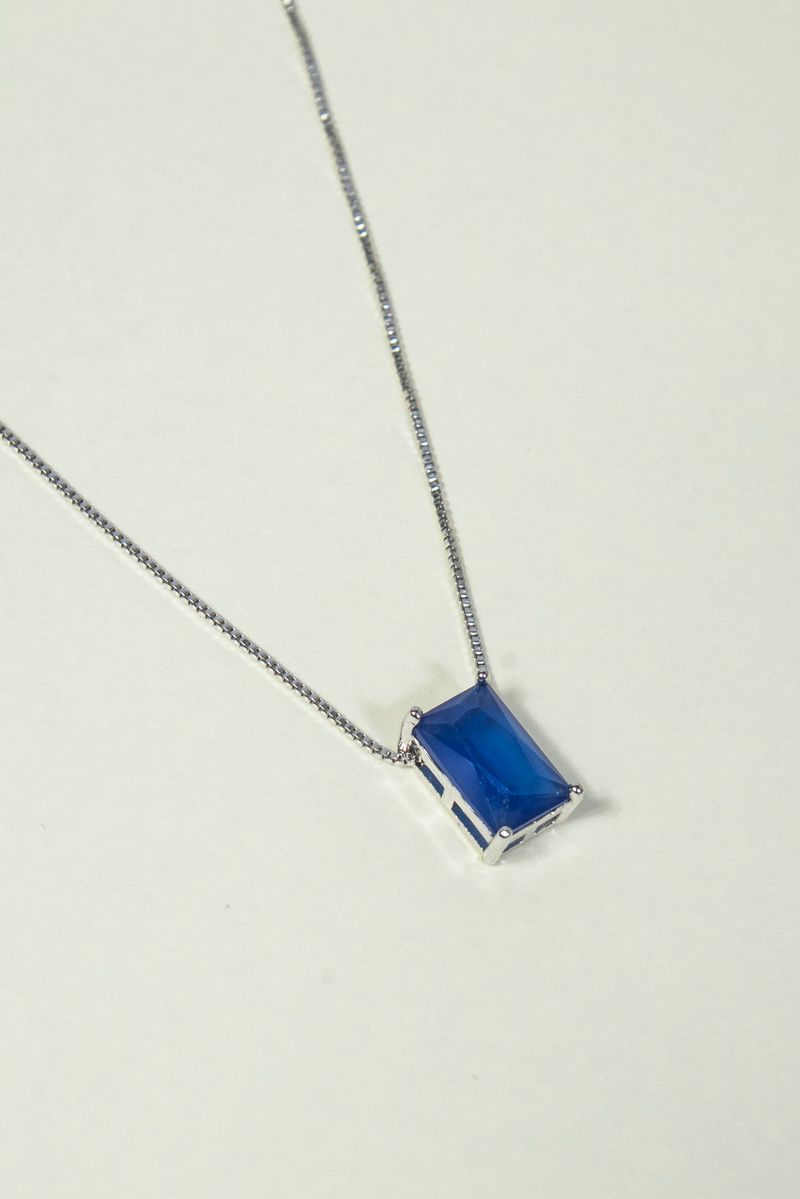 Colar com Pedra Azul Retangular Banhado em Ródio Branco