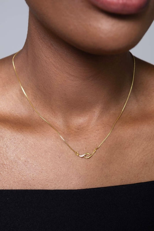 A corrente de 45 cm proporciona um caimento confortável e equilibrado, posicionando os pingentes de forma harmoniosa no colo e destacando seu visual diferenciado.