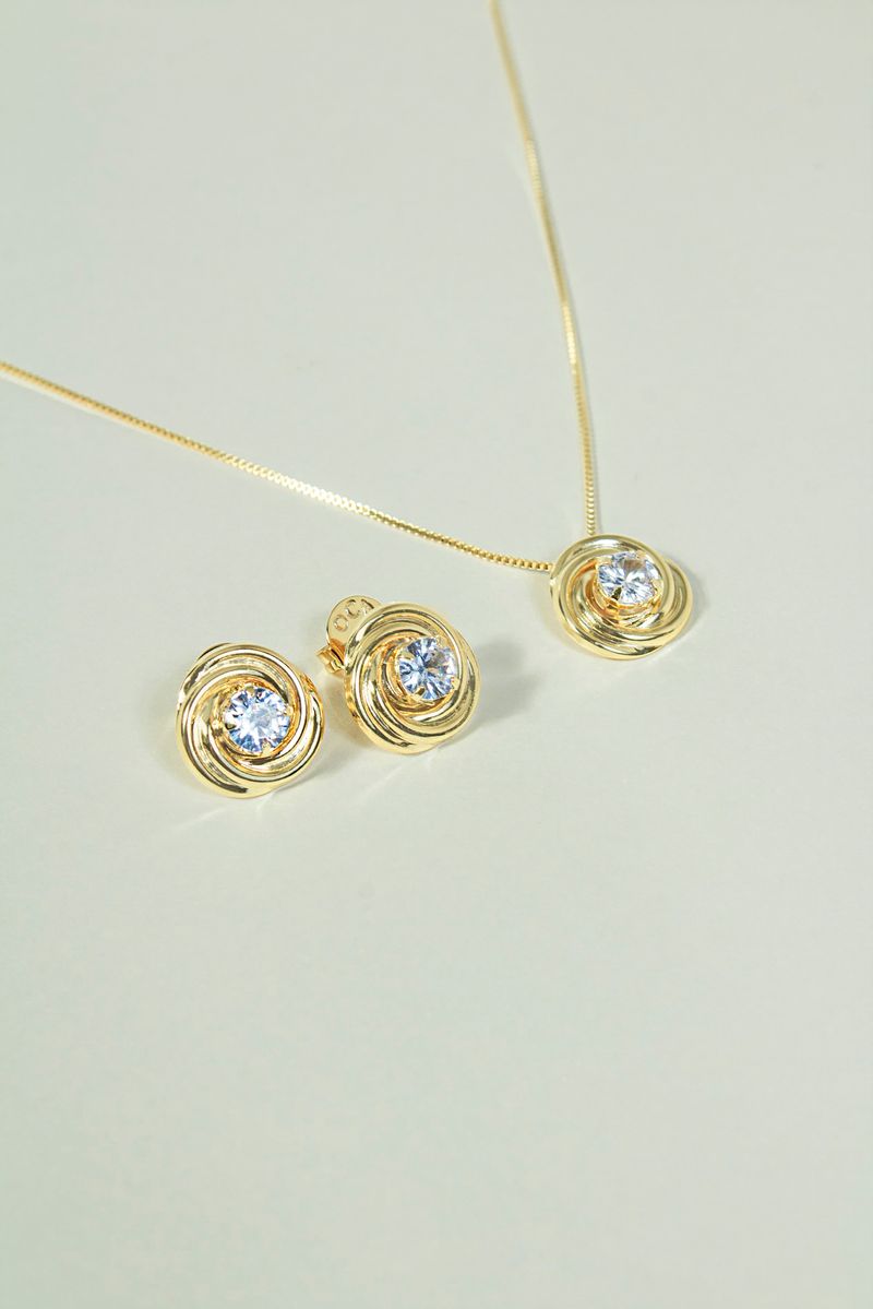Conjunto Colar e Brinco Espiral com Ponto de Luz
