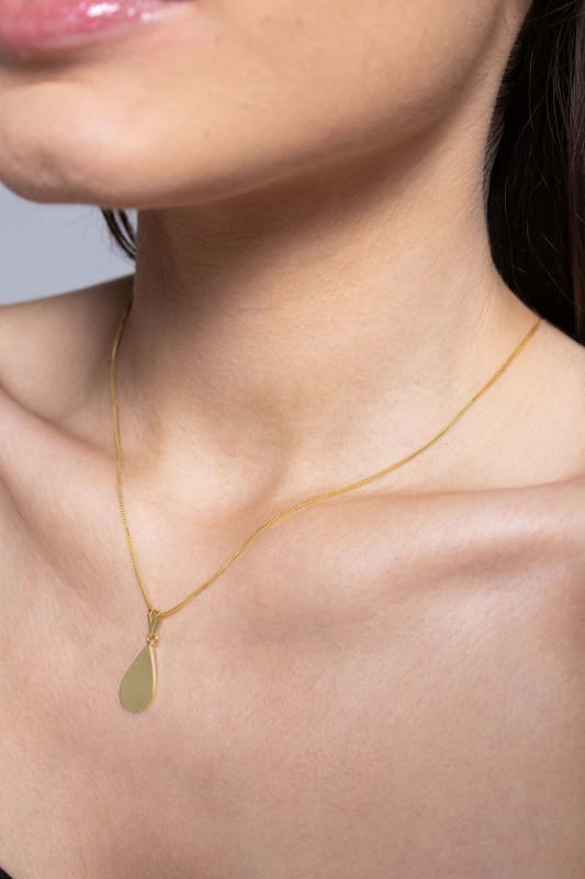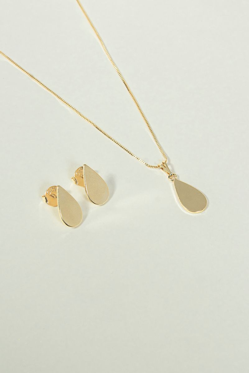 Este Conjunto Colar e Brinco Gota Lisa é banhado em 10 camadas de Ouro 18K, garantindo a você muita qualidade e durabilidade, evitando que a peça escureça, desbote ou descasque.