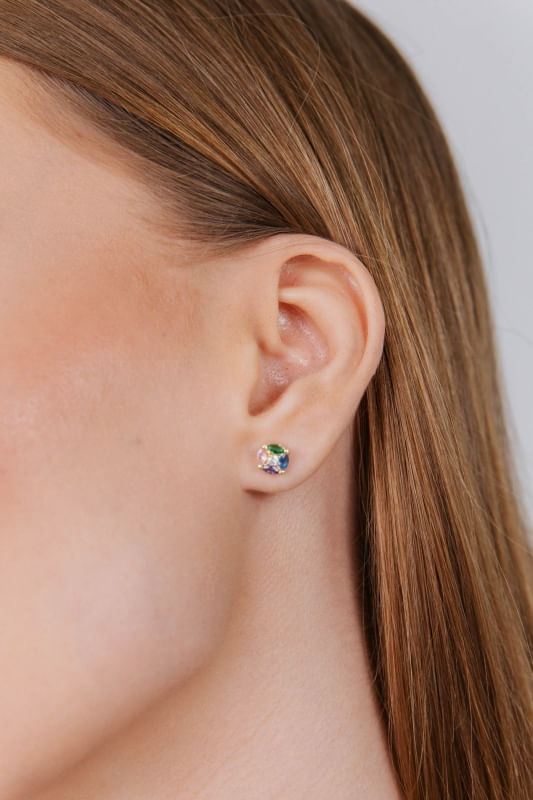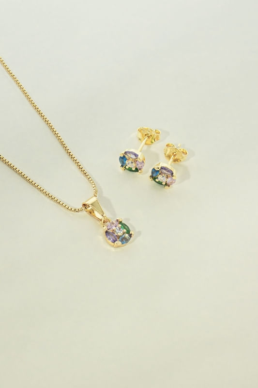 Conjunto Colar e Brinco Redondo Colorido