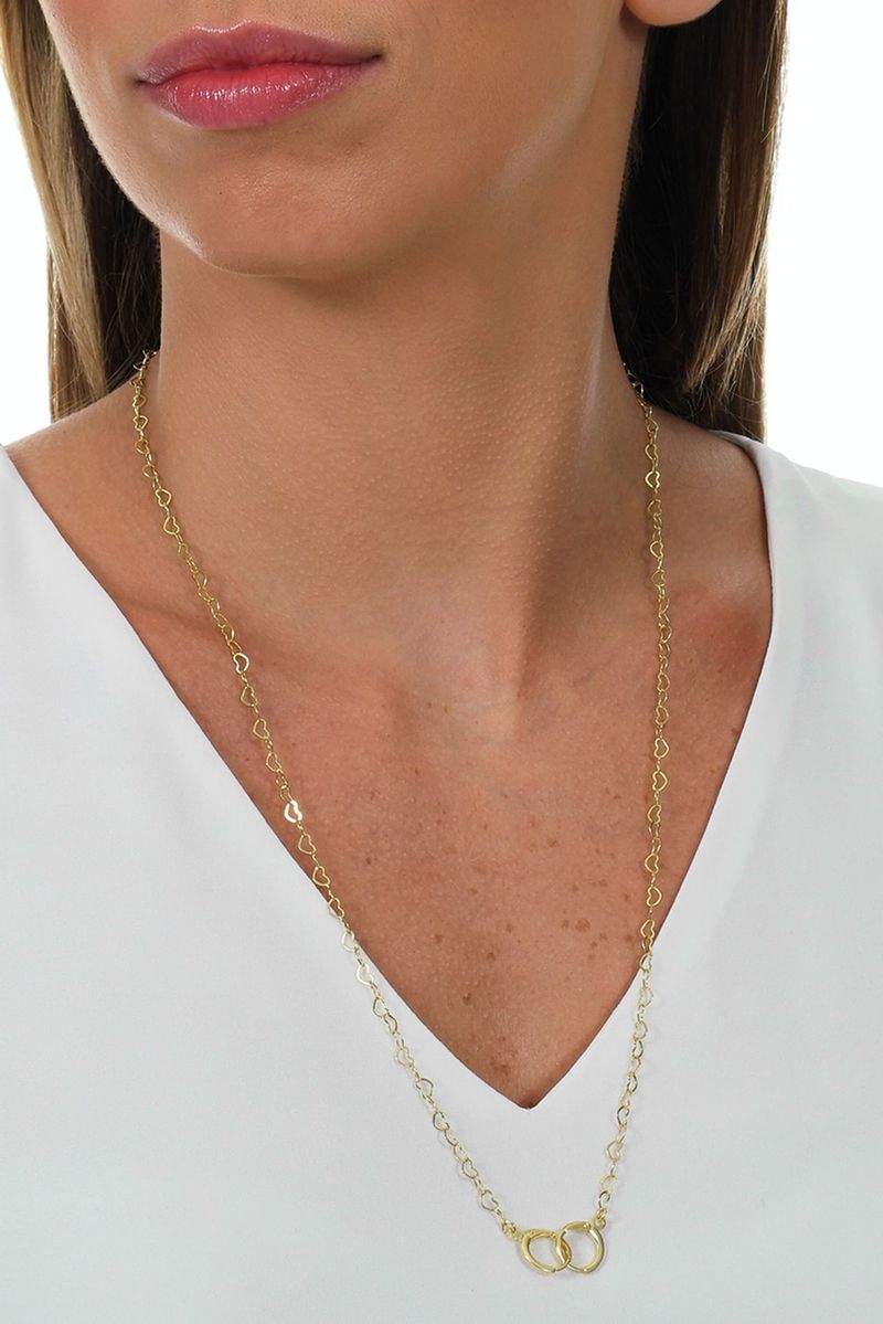 Esta Corrente Elos Coração é banhada em 10 camadas de Ouro 18k, garantindo a você muita qualidade e durabilidade, evitando que a peça escureça, desbote ou descasque.