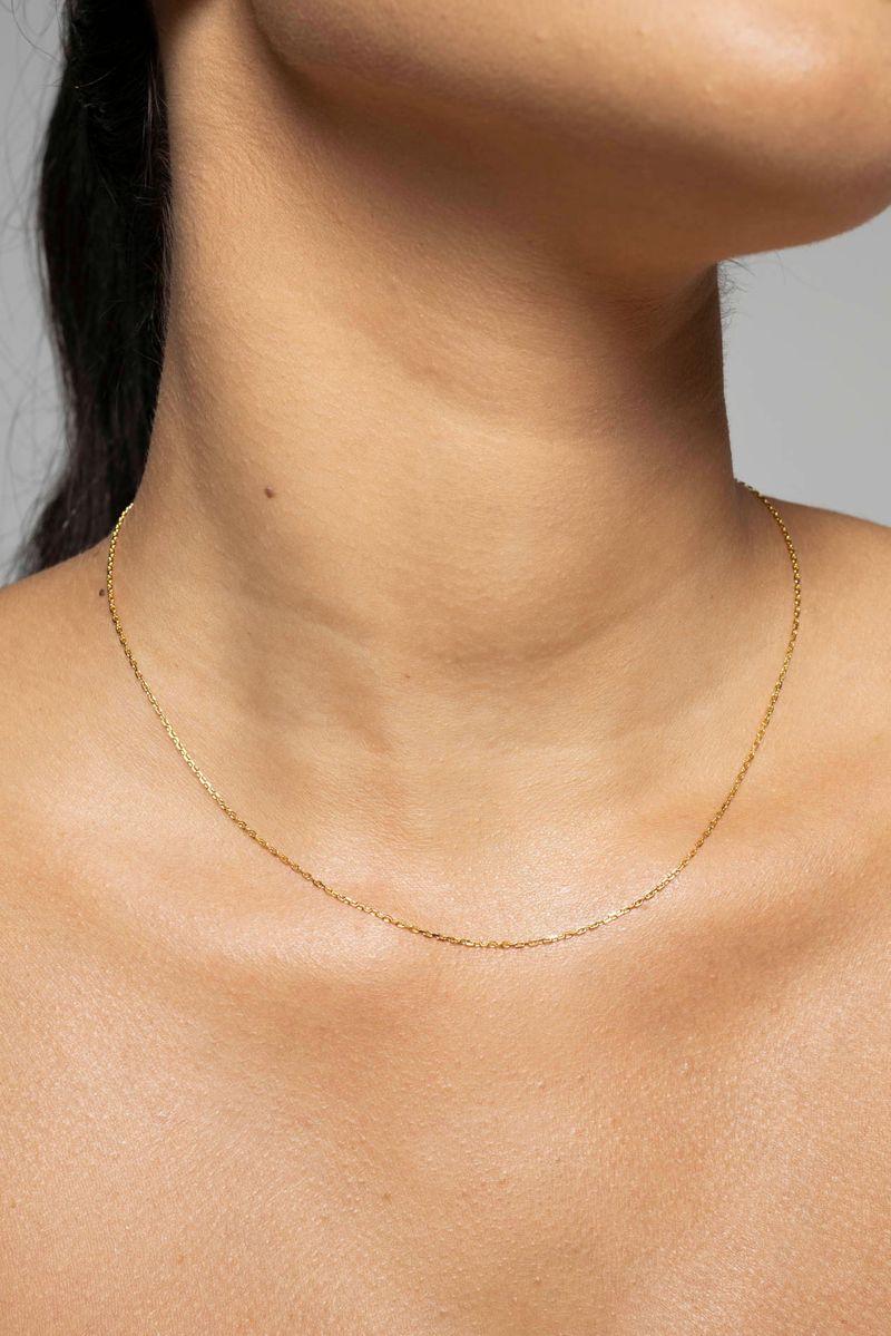 Com 43 cm de comprimento, possui ajuste confortável e posicionamento mais próximo ao colo, podendo ser utilizada sozinha ou integrada a composições em mix com outros colares.
