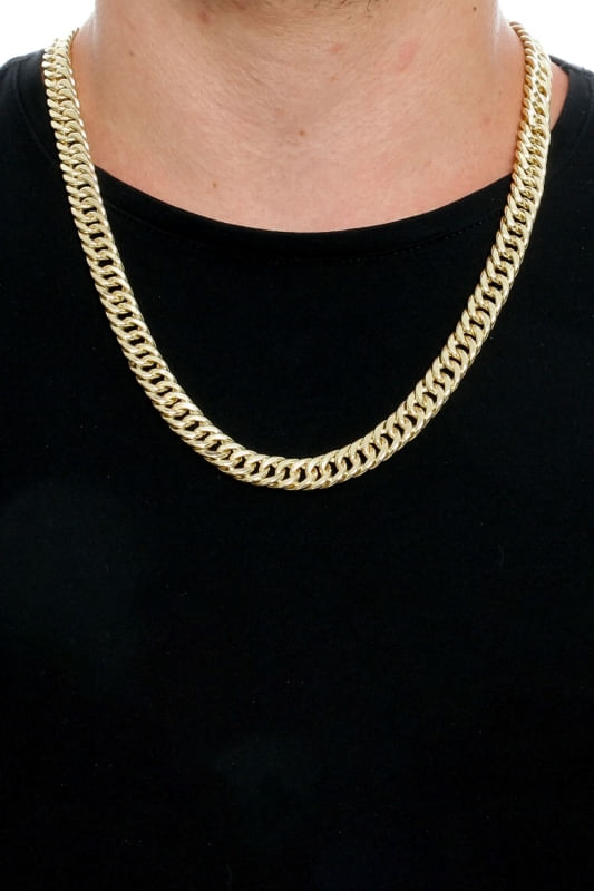 Esta Corrente Grumet Duplo com Fecho Gaveta é banhada em 10 camadas de Ouro 18k, garantindo a você muita qualidade e durabilidade, evitando que a peça escureça, desbote ou descasque.