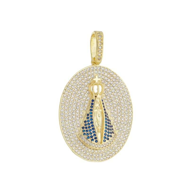 Pingente Nossa Senhora Aparecida Cravejado com Micro Zirônia Banhado a Ouro 18k