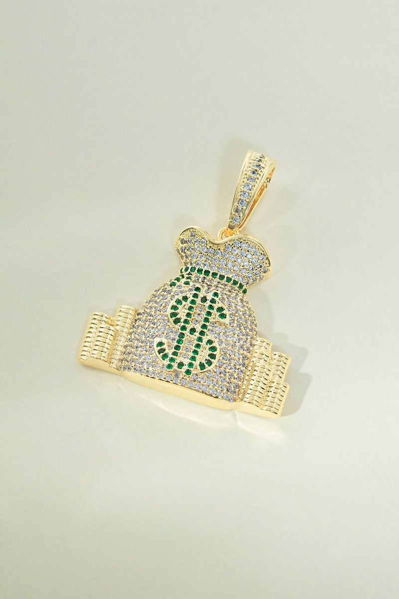 Pingente Saco de Dinheiro Cravejado Banhado a Ouro 18k