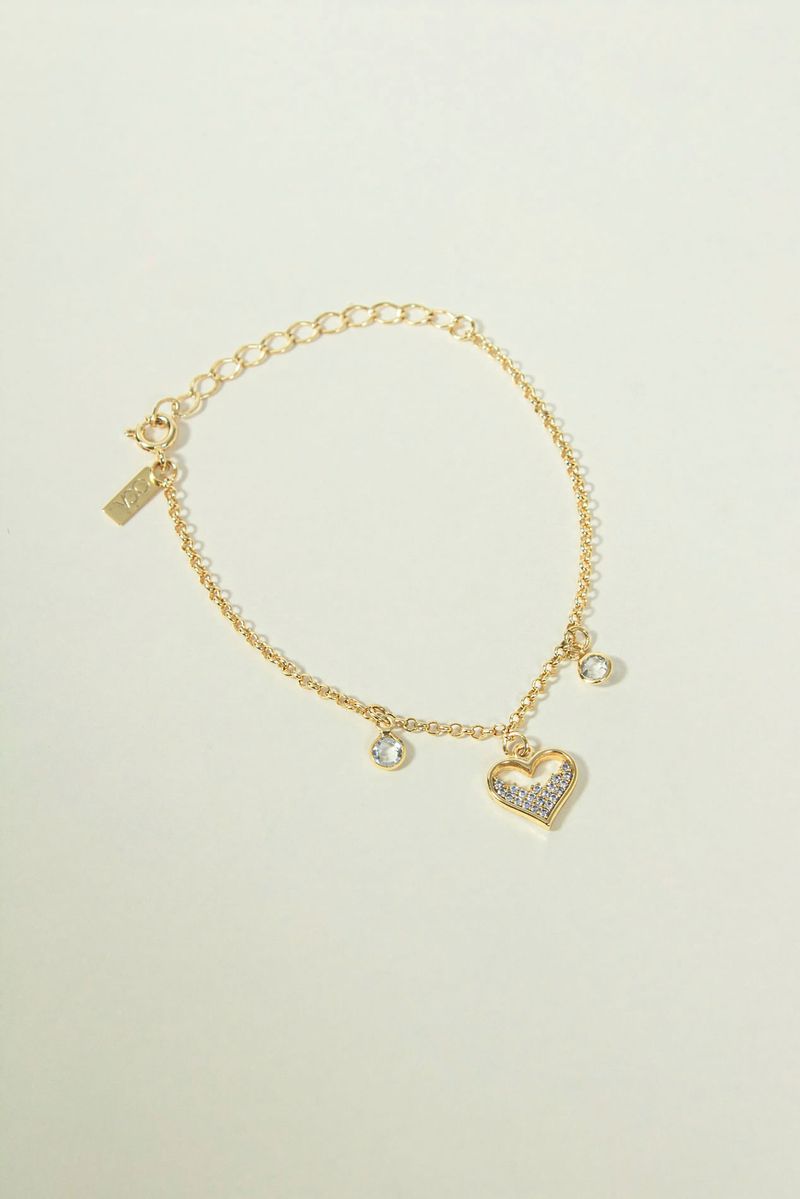 Com design delicado e romântico, a Pulseira Coração Cravejada e Pontos de Luz combina elegância e brilho em uma composição charmosa e sofisticada. O destaque fica por conta do coração cravejado em zircônias, acompanhado por pequenos pontos de luz distribuídos ao longo da pulseira, que refletem a luz de forma sutil e valorizam ainda mais o visual da peça.