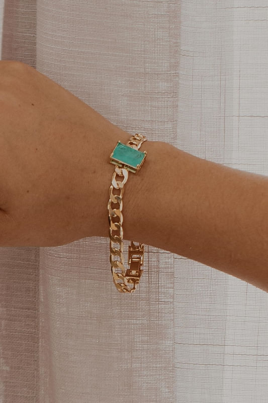 Esta Pulseira Turmalina é banhada em 10 camadas de Ouro 18k, garantindo a você muita qualidade e durabilidade, evitando que a peça escureça, desbote ou descasque.