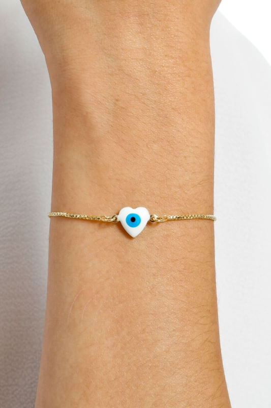 Pulseira Regulável Banhado a Ouro 18k com Olho Grego em formato de coração