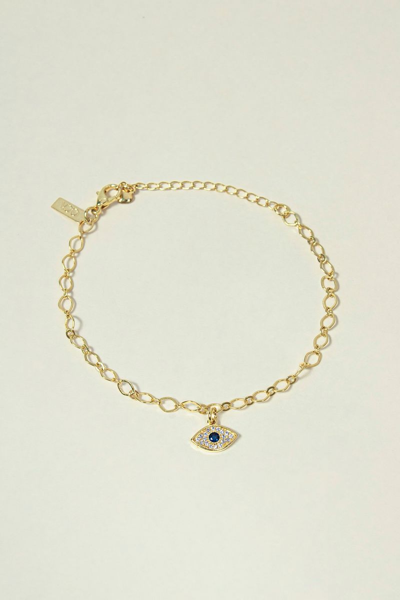 Pulseira Olho Grego Cravejado com Pedras de Zircônia Banhado a Ouro 18k