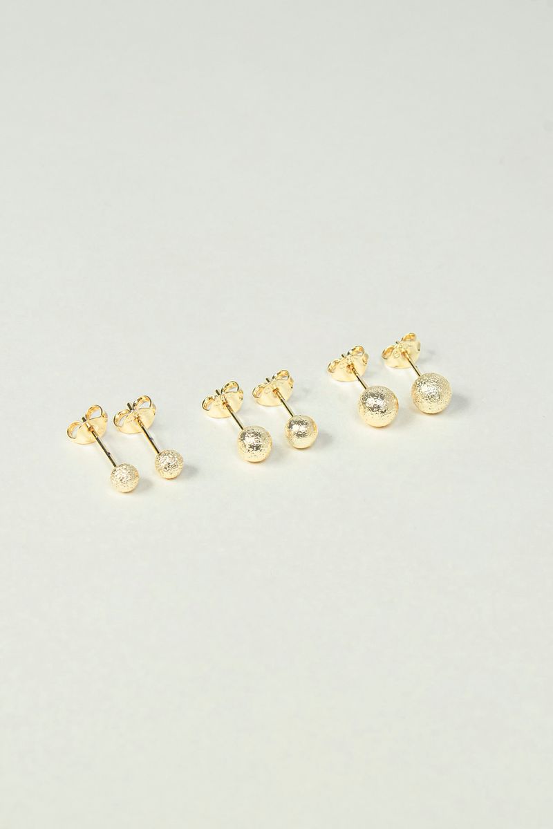 Trio de Brincos de Bola Craquelada Banhado em Ouro 18k